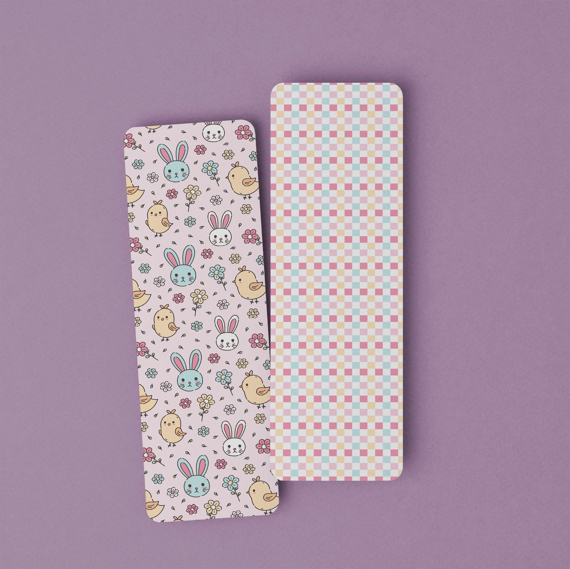 A beautiful bookmark featuring bunnies and chicks to celebrate Easter! Made of lightweight aluminium with rounded corners, it is double sided - chicks and bunnies on one side and a pretty pastel check on the other.Makes a great and practical gift to pop into your child's easter bag this year.