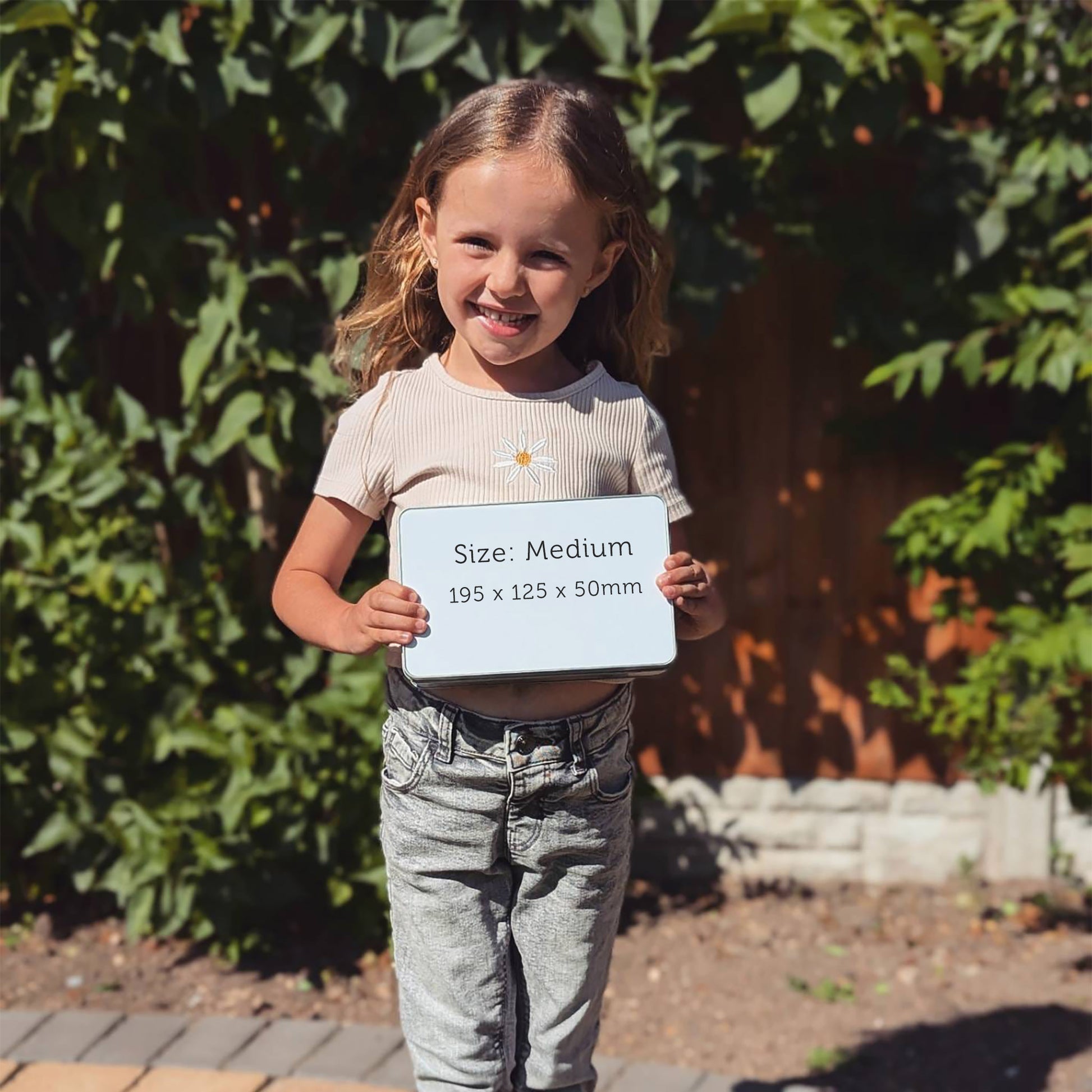 Your tin will be printed using the sublimation process which works by heat turning the inks into a gas. This gives a permanent, vibrant print that will not fade or crack. It is then wrapped with the greatest of care and sent on its merry way to you by Royal Mail Tracked Post.